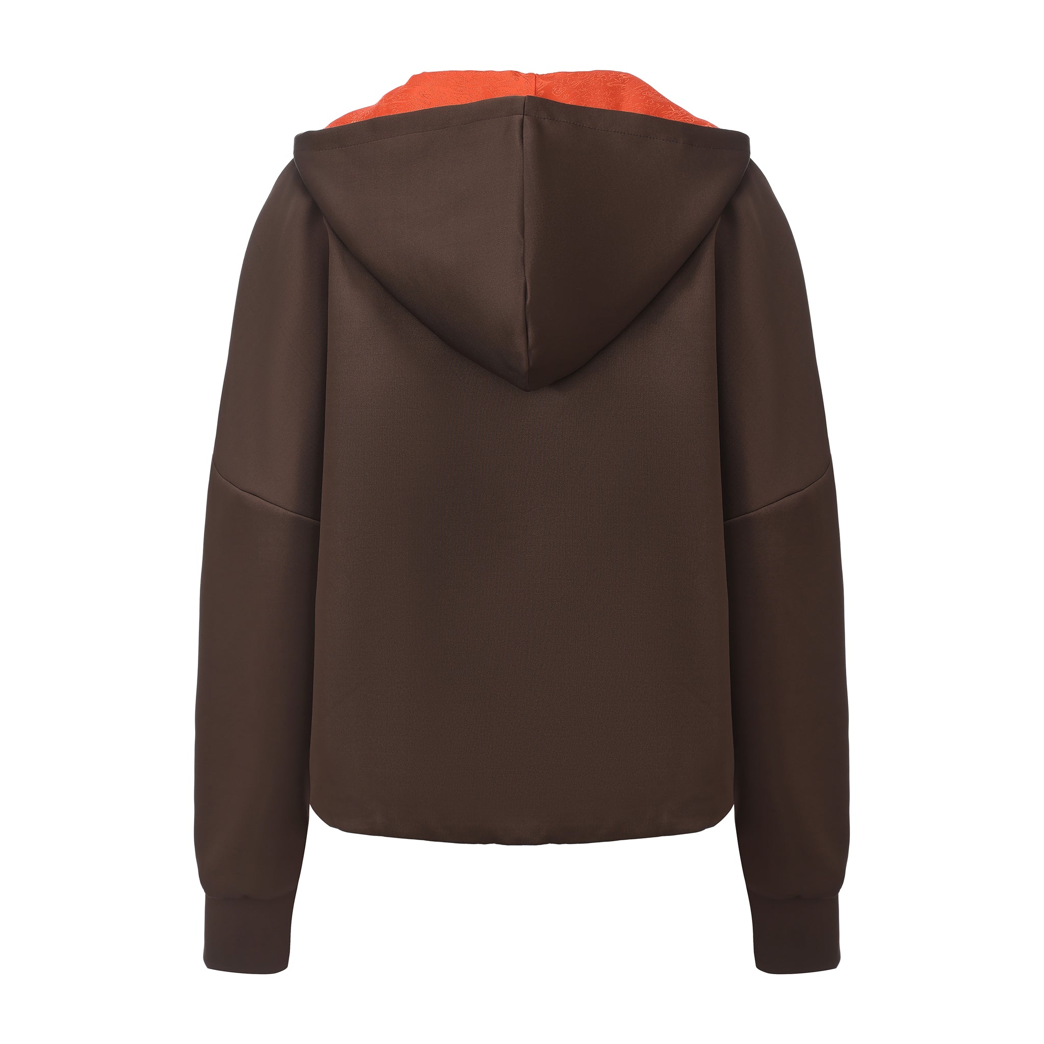 Reversible Hoodie: Phoenix Red DAWANG custom Brocade/ Brown Cotton DEtail