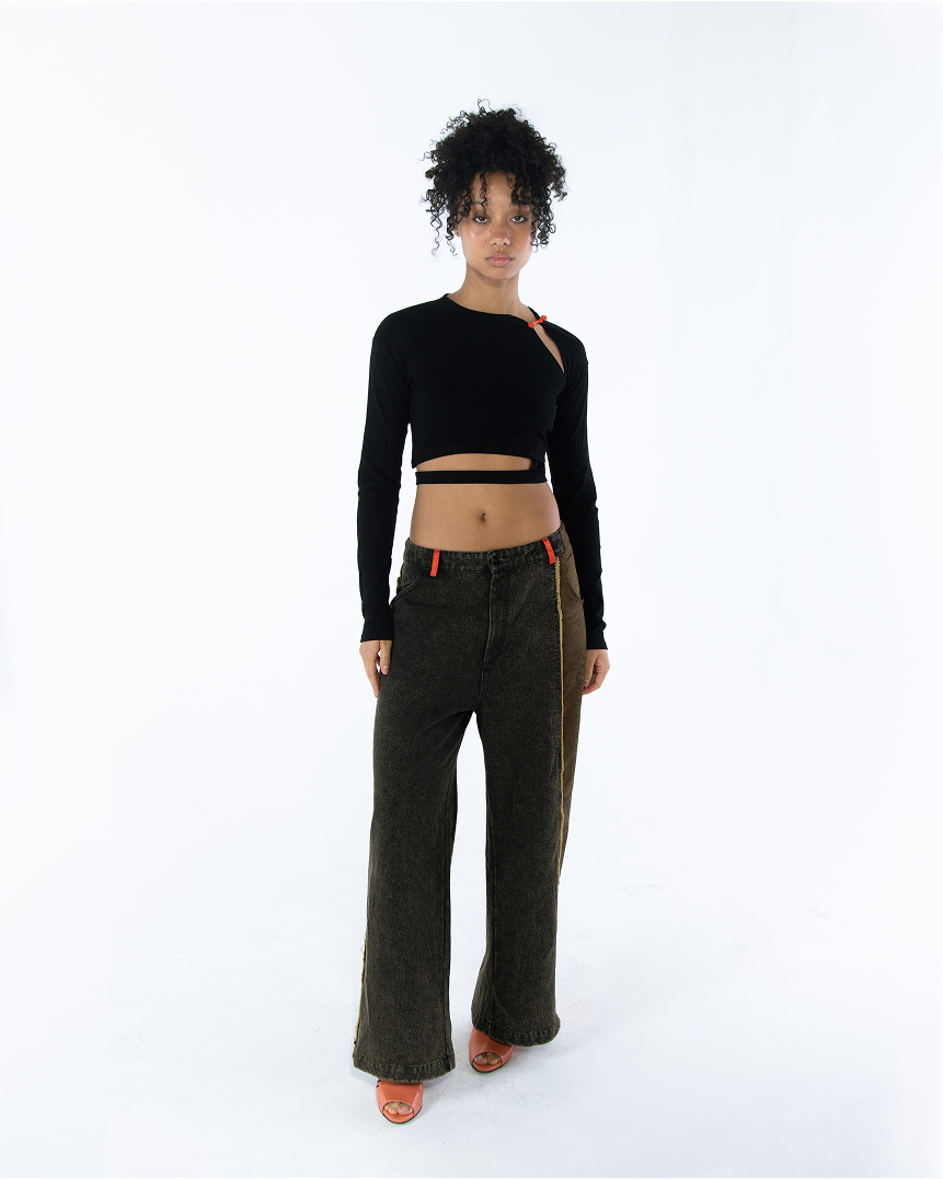 Wang Patch Denim Wide Leg Pants Phoenix Red
